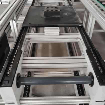 工装板:固定物料并搭载于滚轮上,随链条同步移动。